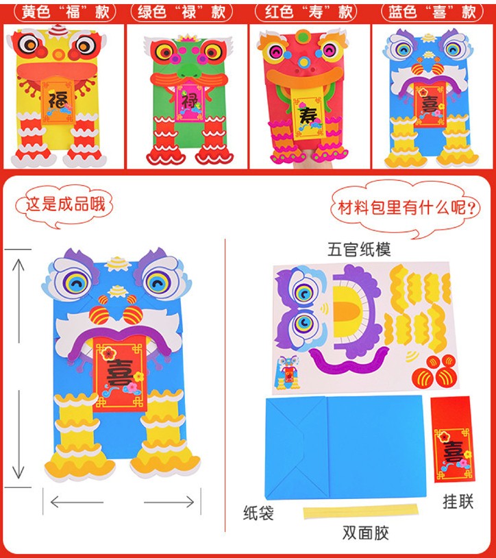 A simple and enjoyable craft set for assembling your own traditional lion dancer puppet. The kit includes pre-cut pieces and basic materials needed for easy construction. Suitable for classrooms, cultural projects, and home activities, it introduces children to the lion dance tradition while offering a straightforward hands-on activity. Once completed, the puppet can be displayed or used for basic play.