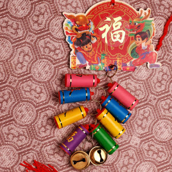 With lots of different colors to brighten your entry way, you'll want to hang this beautiful firecracker decoration on your door to celebrate the Chinese New Year. The Chinese character "Fu - Good Luck" and a more contemporary design of the two lucky children top off this great hanging that can be used year after year.