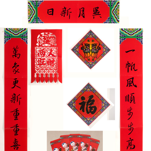 This gift package includes five Year of the Horse decorations: one set of couplets, one good luck wall poster, one Year of the Horse poster, one good luck wall hanging and one set of five red envelopes. Hang these wonderful Chinese New Year decorations around your home to welcome the New Year.