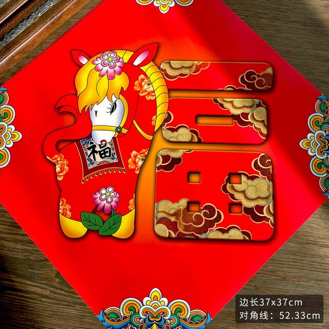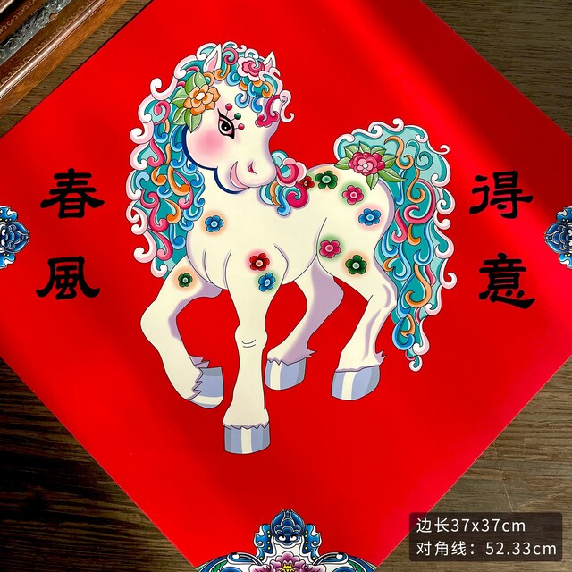 A decorative poster celebrating the Year of the Horse featuring bold red and gold design elements and a stylized horse illustration. The print includes traditional motifs and festive patterns that reflect Lunar New Year themes. Suitable for classroom display, home decoration, or seasonal celebrations to welcome the new year.