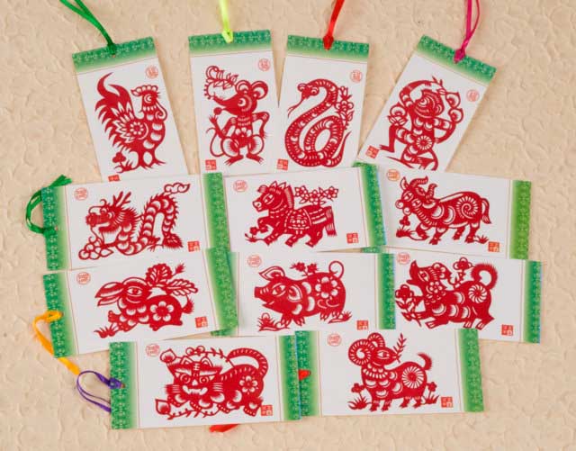 This set of 12 folk papercut bookmarks features each animal sign of the Chinese zodiac in different design. They make a lovely gift for any of your book-loving friends.