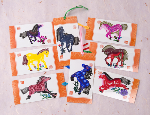 These intricate papercut bookmarks feature horses in different designs, which are great for celebrating Year of the Horse. Each of the unique designs demonstrate traditional folk art. Price is for a set of 8 papercuts.