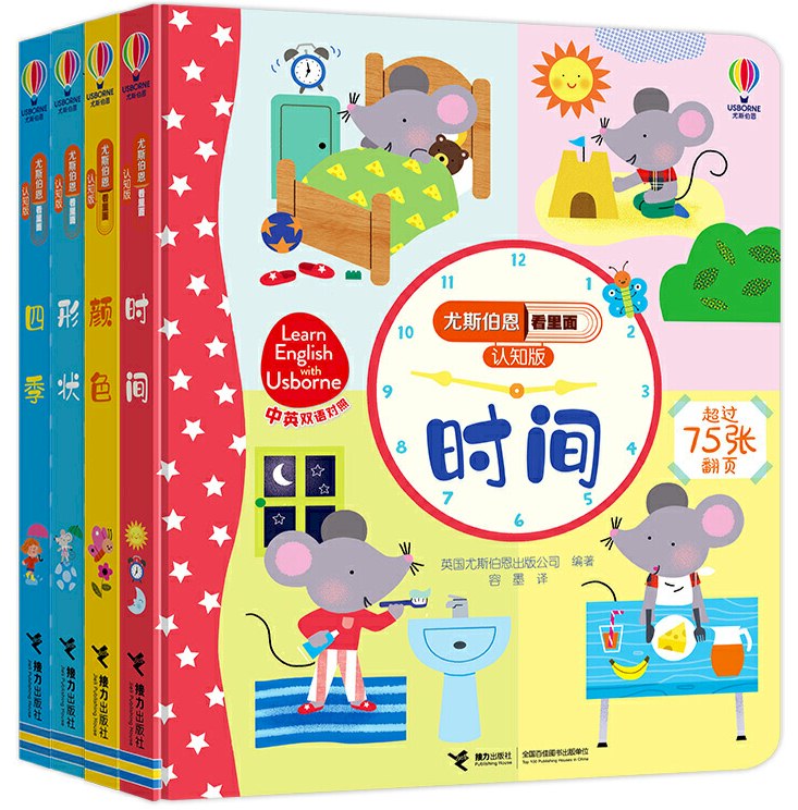 国尤斯伯恩出版公司编著的双语认知书。包含颜色、形状、时间、四季,四大生活常识主题。上百张翻页打造多种趣味游戏, 400多个英语词汇,常识英语同步启蒙。