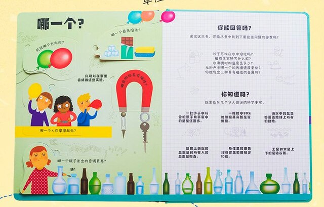 《知识》,如何带孩子通往探索求知的大门,他们会对生活中各种各样的事物充满了好奇和疑问,并且会提出让成年人意想不到却可能难以回答的问题。这本书就收集了许多孩子经常问出的高配问题,比如船是怎样漂在水上的、月亮的形状为什么总在变化、飞机为什么要有机翼、毛毛虫是怎样变成蝴蝶的、我吃掉的事物都去了哪里……有趣的问题帮助孩子进一步了解人与自然,并从日常生活中探索科学知识,培养科学思维;获取知识的同时,孩子们还会惊叹原来科学无处不在、如此奇妙。超过60张翻页设计,给孩子60多次自主探索和揭秘的体验。