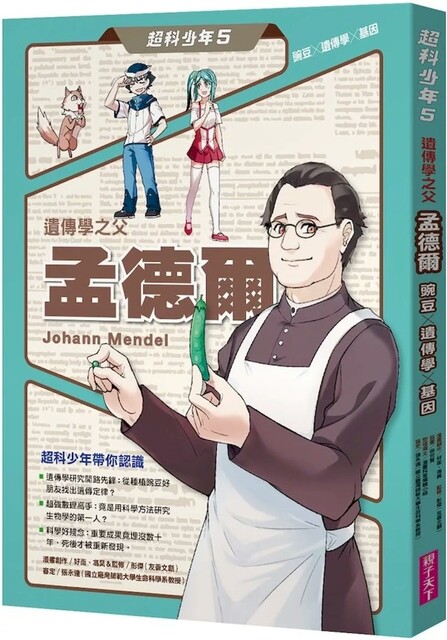 【超科少年系列】系列是一套既可引起孩子主動閱讀的動機、點燃其對科學的熱忱,同時又能帶領他們深入了解重大科學發現背後脈絡及原理的優質漫畫,廣受各界歡迎,並且多次被讚譽為「最能銜接國高中理科學習的本土自製漫畫」。系列聚焦在18世紀以來多位影響世界科學發展的科學家,以及他們指標性科學研究背後的原理、推進歷程及關鍵意義。系列別具巧思的設計雙封面雙料設計:右翻可透過精彩萬分的漫畫故事,跟著主角人物重返科學家生活的年代,與他們一起經歷觀察、提問、假設、驗證等重要的科學發現歷程;左翻則可閱讀由漫畫元素拆解而成的有趣易懂圖文百科,重要摘要這些科學理論或發明的重點、成就及影響等。