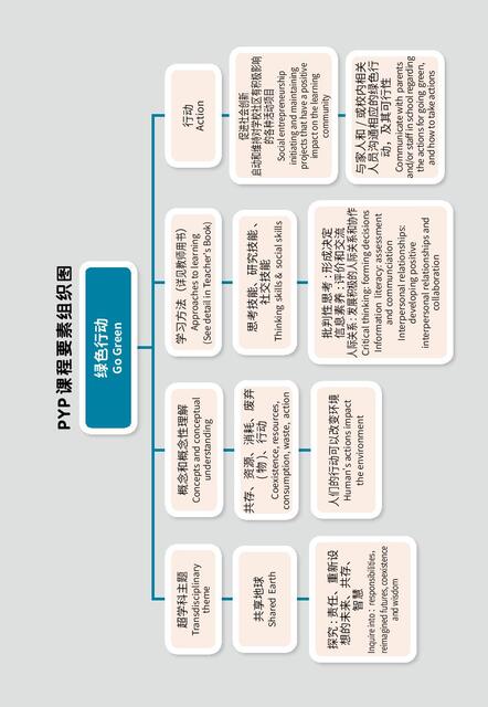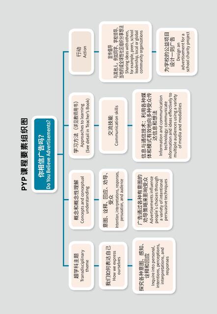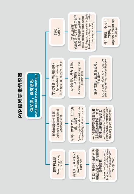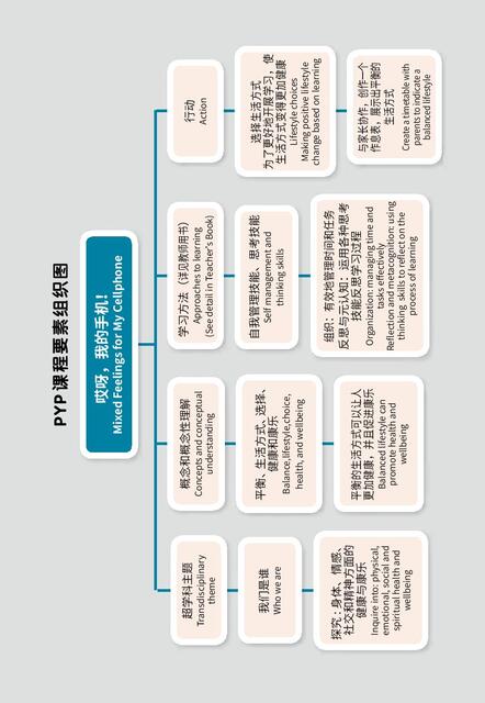 The series includes six picture books and one Teacher's Book. At the beginning of each picture book there is a PYP Key Elements Map, which presents the important components of the IB course in the form of a graphic organizer to help teachers and students identify the key and related concepts, develop conceptual understanding as the plots unfold, so that teachers can use concepts to drive the curriculum. Sub-skills and student action are also listed in the mind map, which can be used by teachers to plan for the teaching of the unit.