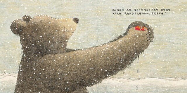 《甜甜的手掌》讲述了一个甜美温馨的故事。作者用饱蘸童真童趣的笔,细腻地描画了两只可爱的小熊。他们把水果的香味揉进手掌,带着甜甜的手掌去冬眠;两只小熊手掌上散发出来的不同香味,激发着他们的好奇心,让他们彼此吸引,相互靠近。后,他们相互舔触着对方的手掌,紧紧依偎着酣然入梦。