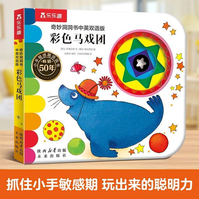 彩色马戏团 认识颜色/双语启蒙/精细动作发育 本书是一本以马戏团为主题的色彩认知书,适合0-3岁孩子阅读。书中把粉色、蓝色、红色等颜色认知融进好玩的马戏团杂技表演中,在细绳上跳舞的女孩、打鼓的小丑、空中飞人等一个个吸引人的故事,不仅能让颜色认知变得简单,还能让孩子获得更有趣的阅读体验。全书语言生动有趣,读来朗朗上口,节奏感强,中英双语的内容设计,让孩子在不知不觉中完成英文启蒙。插画色彩鲜艳,笔触灵动活泼。书中形状各异的洞洞,专为手指敏感期的宝宝的设计,戳一戳、抠一抠,锻炼宝宝的手指灵活性,激发精细动作发育。