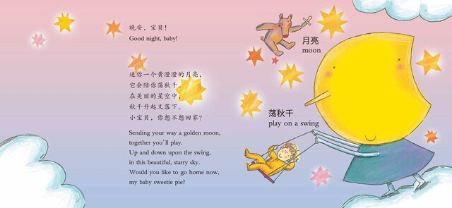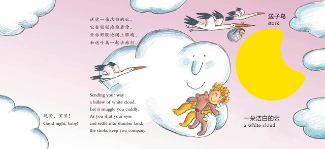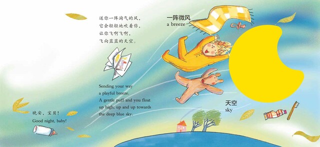 晚安,宝贝!睡前安抚,提高想象力/双语启蒙/精细动作发育 本书是睡前安抚书,适合0-3岁孩子阅读。静静的夜晚,小宝宝睡不着怎么办?那就让微风轻轻地吹着他,把他吹到软绵绵的白云上,再让月亮摇着他,听星星给他讲故事……慢慢地,一个甜甜的梦就开始啦!全书语言生动有趣,读来朗朗上口,节奏感强,中英双语的内容设计,让孩子在不知不觉中完成英文启蒙。插画色彩鲜艳,笔触灵动活泼。书中形状各异的洞洞,专为手指敏感期的宝宝的设计,戳一戳、抠一抠,锻炼宝宝的手指灵活性,激发精细动作发育。