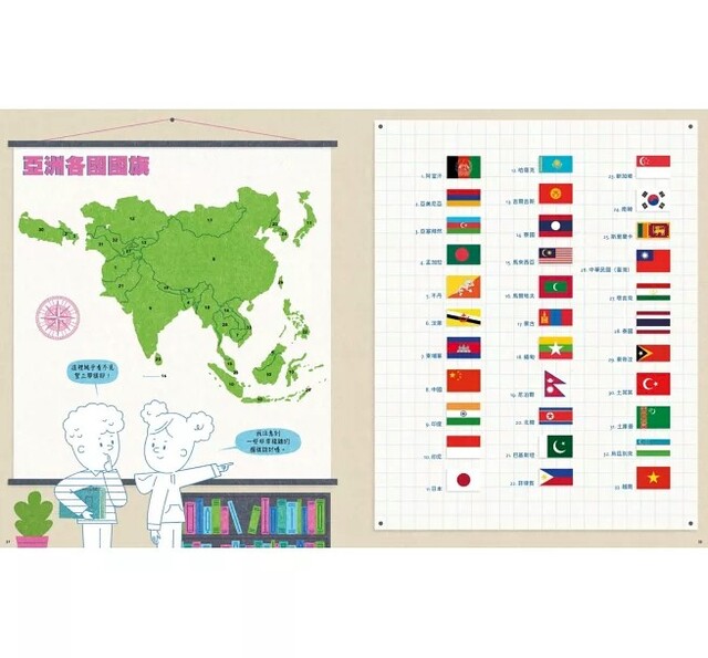 ►全書以大陸地域作為主分類,再以主題進行細節的分類介紹,讓孩子可以了解國旗背後的意涵,進而深入解析各國間的關係。