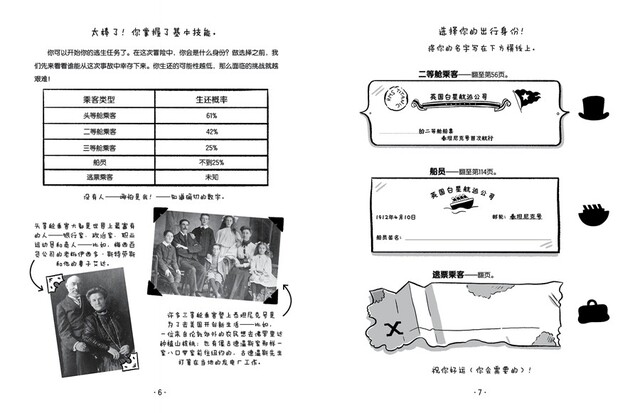 你想穿越回古埃及,沉浸式体验当法老、当金字塔工人吗?你想参与人类伟大的首次登月任务,克服太空中的种种险境吗?或者,你敢不敢登上注定要沉没的泰坦尼克号,挑战能否幸存下来?《逃出这本书!》是一套适合8-12岁孩子的互动游戏书。每本书都是逃生大师发来的挑战,邀请读者参与特定主题的冒险逃生游戏。每本书分别有三种身份,每种身份对应一条任务线,读者可以通过画画、做决定、剪开或翻折书页、解谜来获取线索,选择不同会导致不同的故事走向。读者需要在书页间不停跳跃,寻找线索,直到成功逃生。每本书的逃生任务都基于真实事件创作,所以兼具趣味性和知识性。准备好了吗?逃生大师等你来挑战!
