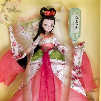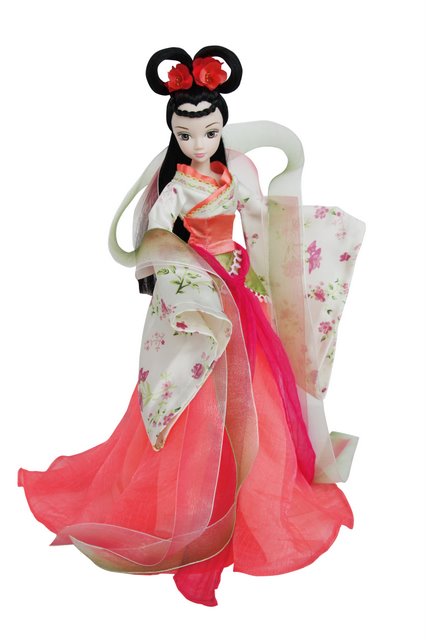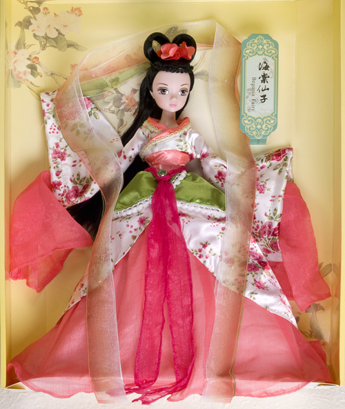 The Begonia Fairy wears elegant ancient attire accented with 2 roses as hair decorations, pink ribbons and flowing decoration. Get other Chinese Myth Tale Doll - Nine-Heaven Fairy, Chang E Fairy and Dragon Girl.