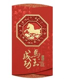 A set of red envelopes designed for the Year of the Horse. Each envelope features festive horse artwork and traditional decorative patterns in red and gold tones. Suitable for gifting money during Lunar New Year celebrations or other occasions, these envelopes provide a simple and themed way to share good wishes for the new year.