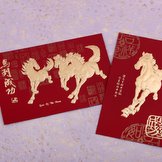 These New Year cards celebrate the beauty of Chinese culture. One card features a gold plated image of a Horse for celebrating Year of the Horse, with the Chinese "骏马呈祥开盛纪,迎春接福开新运"--"Jun Ma Cheng Xiang Kai Sheng Ji,...